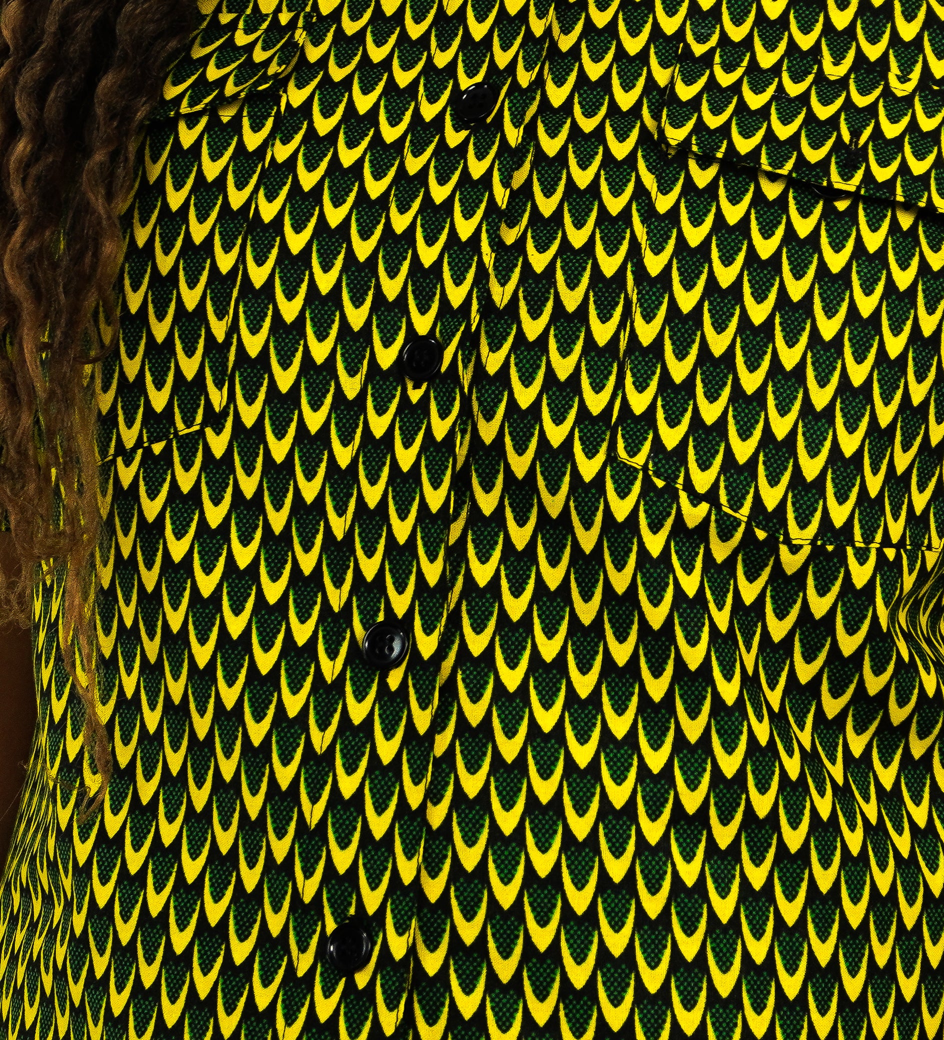 Cotton print fabric. Can be worn buttoned up or loose. A good item for the spring and summer outing.